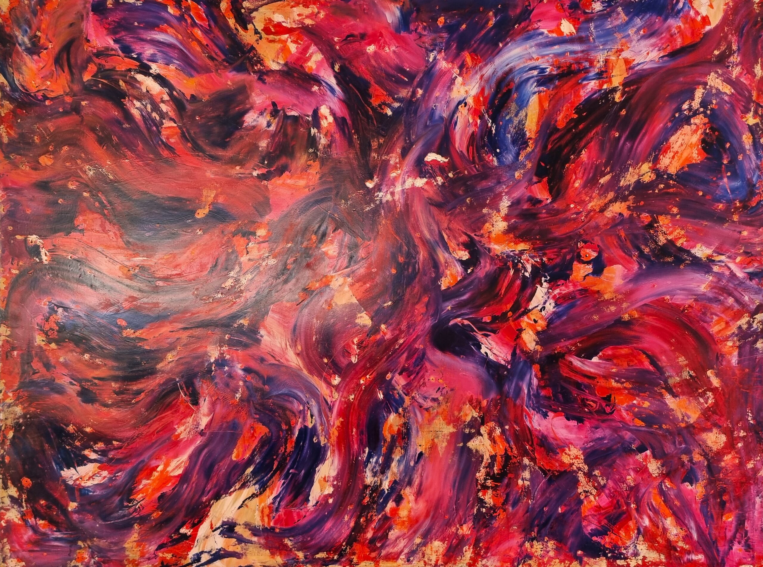 Slika ne pripoveduje o prostoru, temveč o stanju. V toplih zemeljskih tonih se nalagajo sledi časa, spominov in tišine, ki ni prazna. Mehki prehodi med barvami ustvarjajo občutek notranje pokrajine, kjer se preteklost in slutnja srečata brez jasnih meja. Svetlejši odtenki le namignejo na svetlobo – ne kot odgovor, temveč kot tih odmev. To je trenutek ustavitve, ko barva govori namesto besed.